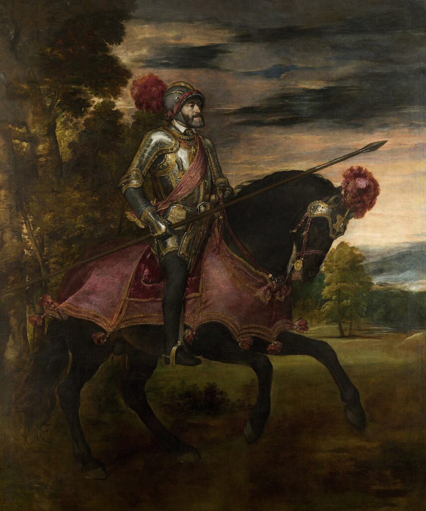 Ainsi, la monte du cheval devint-elle la métaphore du « juste gouvernement des peuples », au moment même où s’affirmait l’absolutisme. Le portrait équestre connaît alors son apogée, et Chaudun, qui lui a consacré un précédent ouvrage au milieu d’une copieuse littérature (La majesté des centaures, Actes Sud, 2006), s’y attarde avec délectation, perdant parfois le fil de l’étude historique et sociale au profit de l’interprétation esthétique, qu’il cherche à teinter de politique. Ainsi voit-il dans le cheval de Charles Quint, portraituré en 1548 par le Titien, dans ce « monstre d’énergie, fantasque, excité par d’hypothétiques frayeurs », une représentation du peuple : « Le cheval-peuple, désormais, son prince impassible le maîtrise ». Il s’agit dès lors de démontrer un savoir-faire politique procuré par la virtuosité équestre.