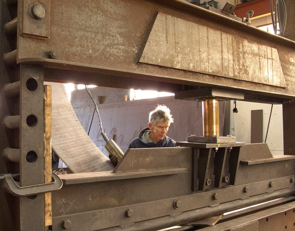 On l’a vu, il y a l’amour des belles choses, des beaux objets, des choses bien faites. Des machines que l’on conçoit et que l’on fabrique en entier. « C’est un travail complet, c’est tout un système », qui incorpore de la mécanique, de l’automatisme, de l’hydraulique, de l’ergonomie… Du début à la fin, il n’y a pas de division du travail. Tous les salariés interviennent et chacun doit s’ajuster en permanence à la tâche de l’autre, contrairement au travail à la chaîne dans les grands groupes industriels. C’est un travail organique. Tous autour de la machine évoquent des hypothèses de montage ou d’assemblage ou des solutions potentielles à un problème. Il y a une sorte d’improvisation, de débat.